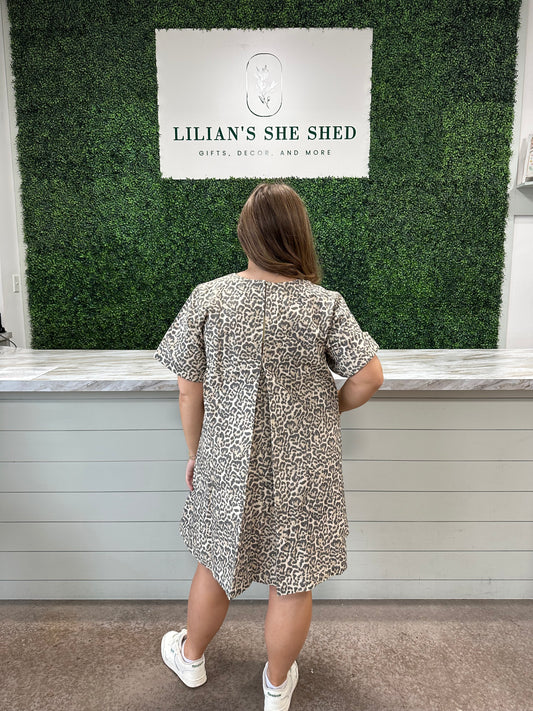 Leopard Dress with Pleated Back