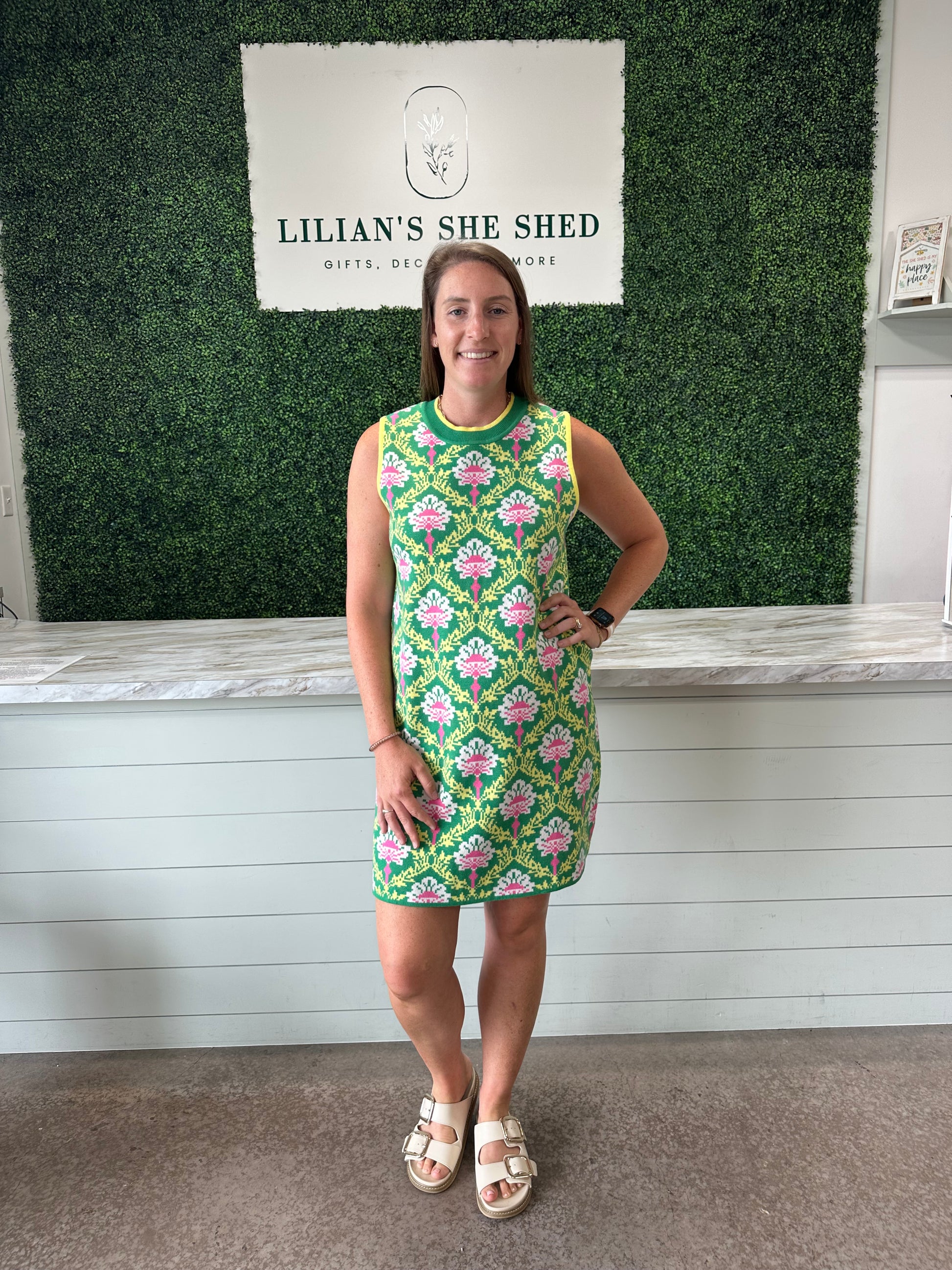 Turn heads in this playful mini tank dress featuring a bold geometric print. Its soft knit fabric hugs your curves while keeping things comfy and cool—perfect for sunny days and fun nights out!