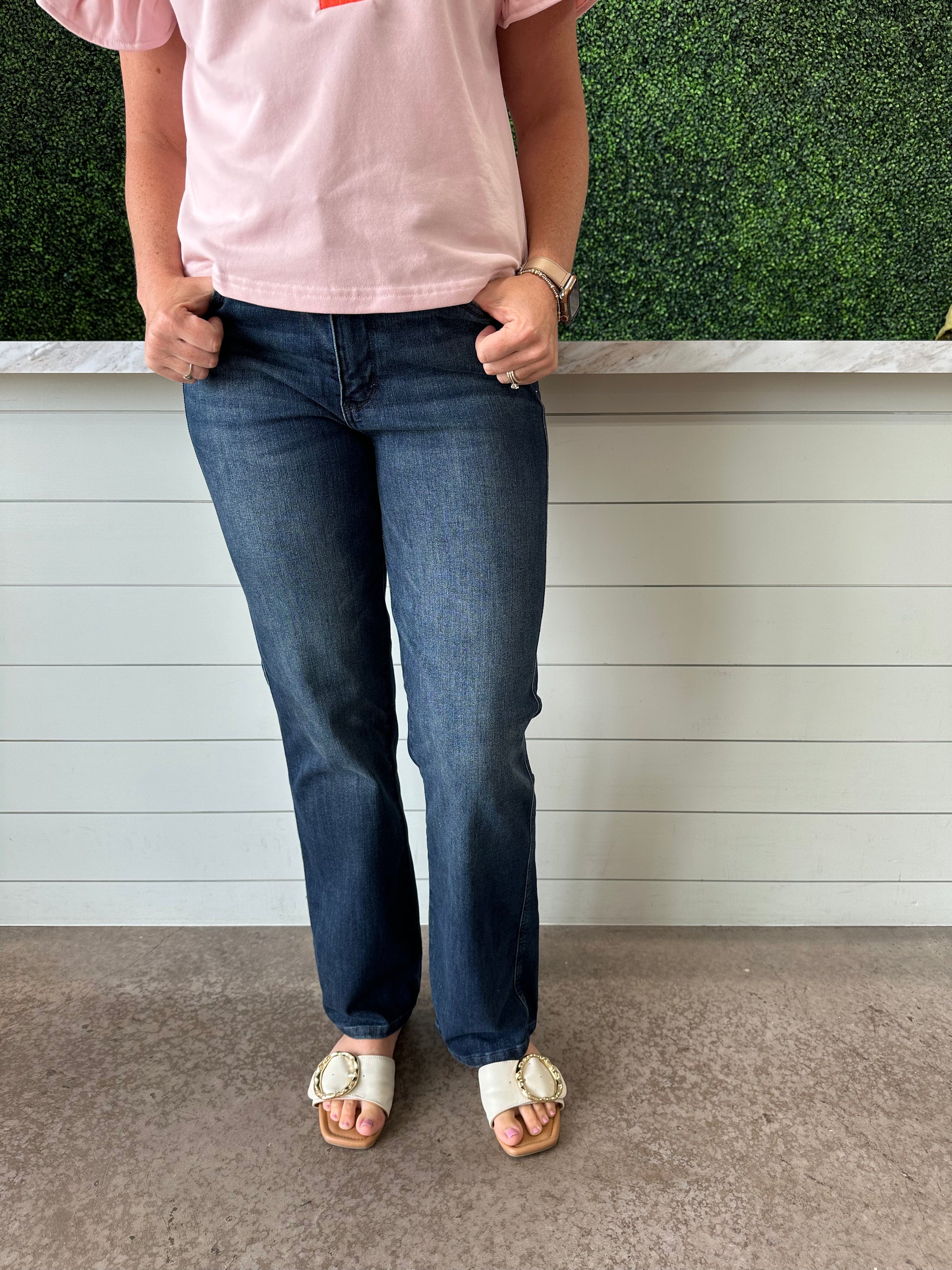 Elevate your look with these midrise jeans that offer not only a slimming tummy control feature, but also a comfortably snug fit that flatters every body type. Perfect for any occasion, these straight jeans will make you feel confident and stylish without even trying!