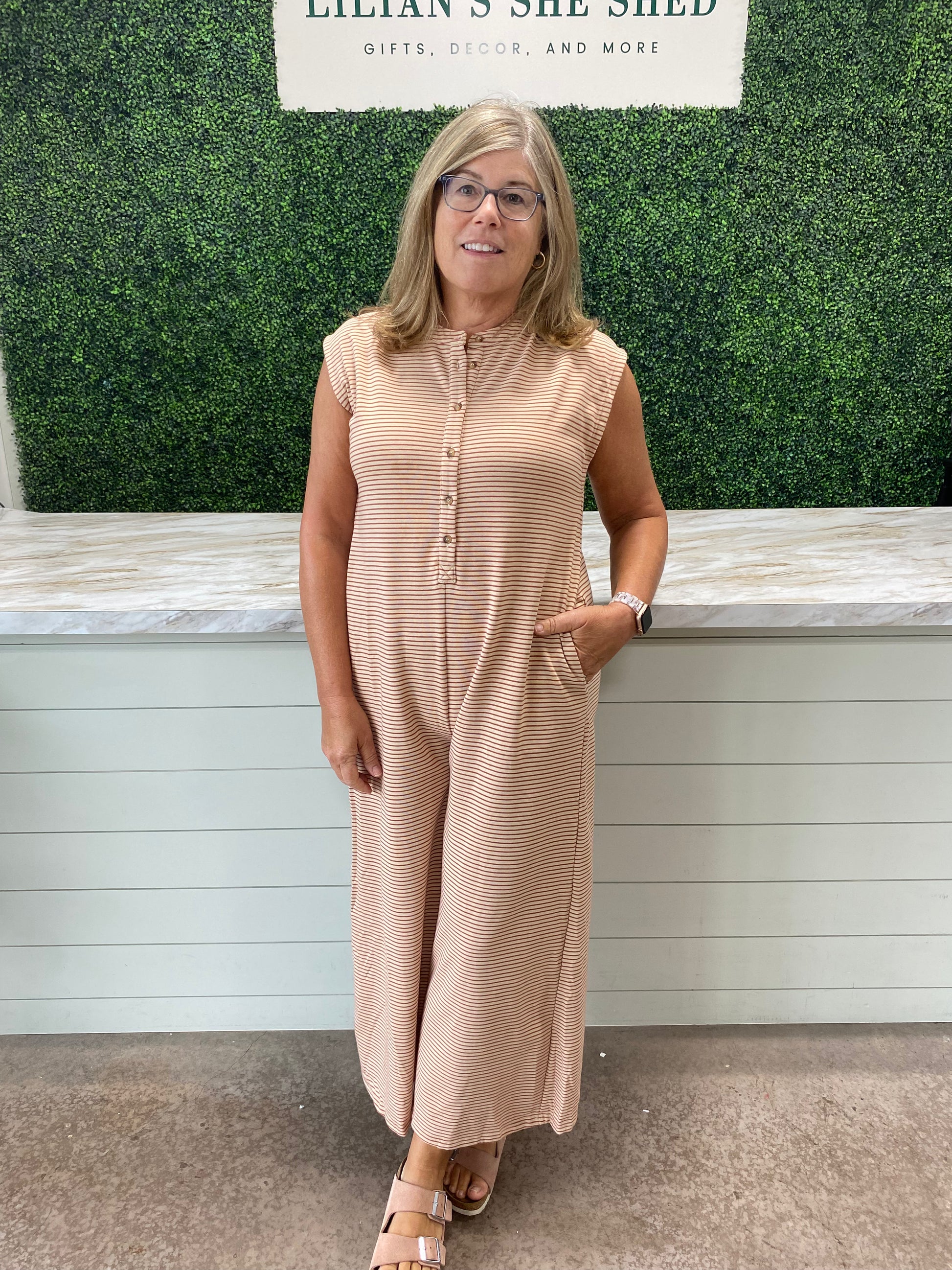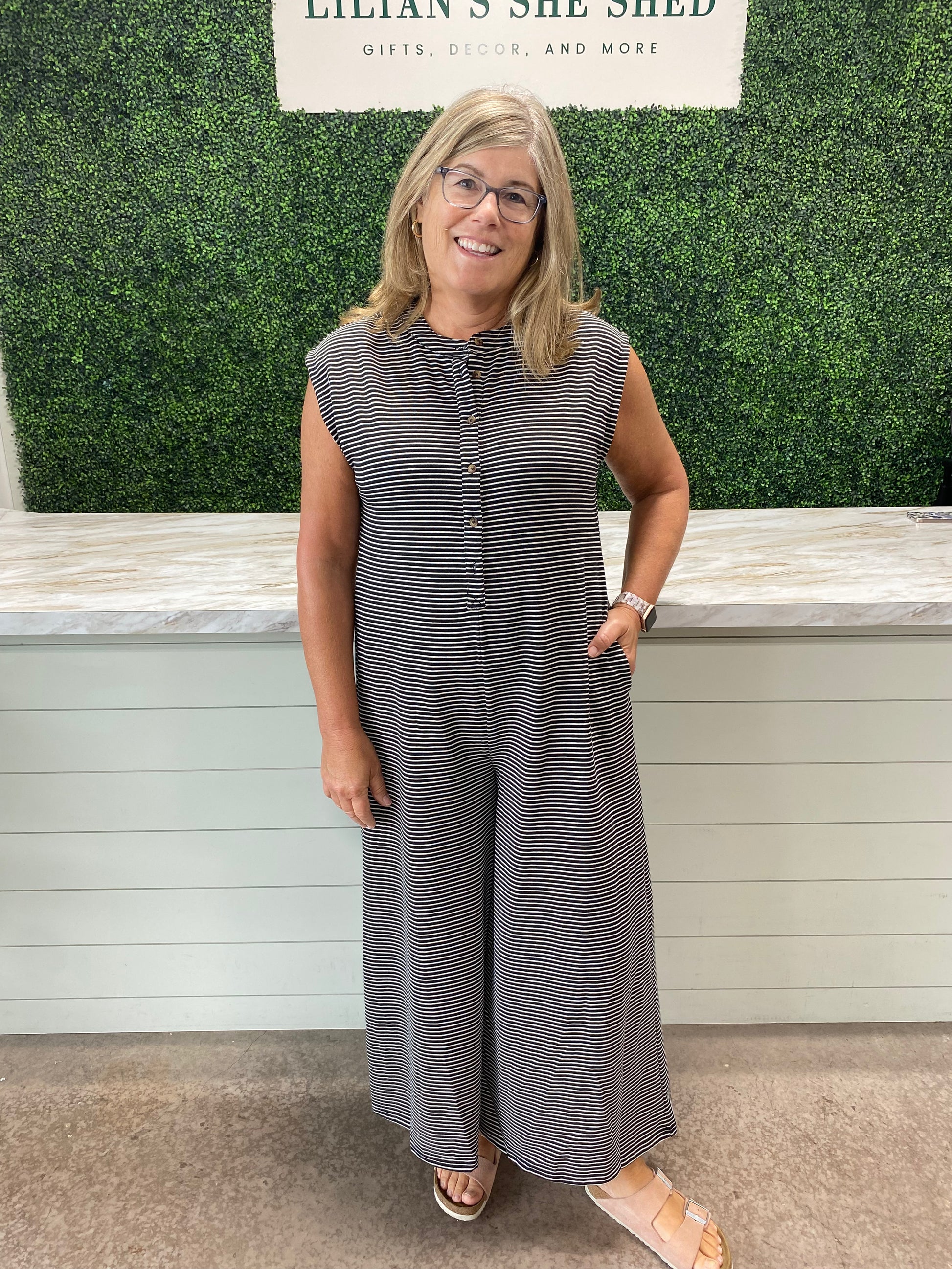 The oversized fit of this jumpsuit allows for maximum comfort while making a statement with the classic stripes. Perfect for any occasion, this jumpsuit is an effortless and stylish choice.