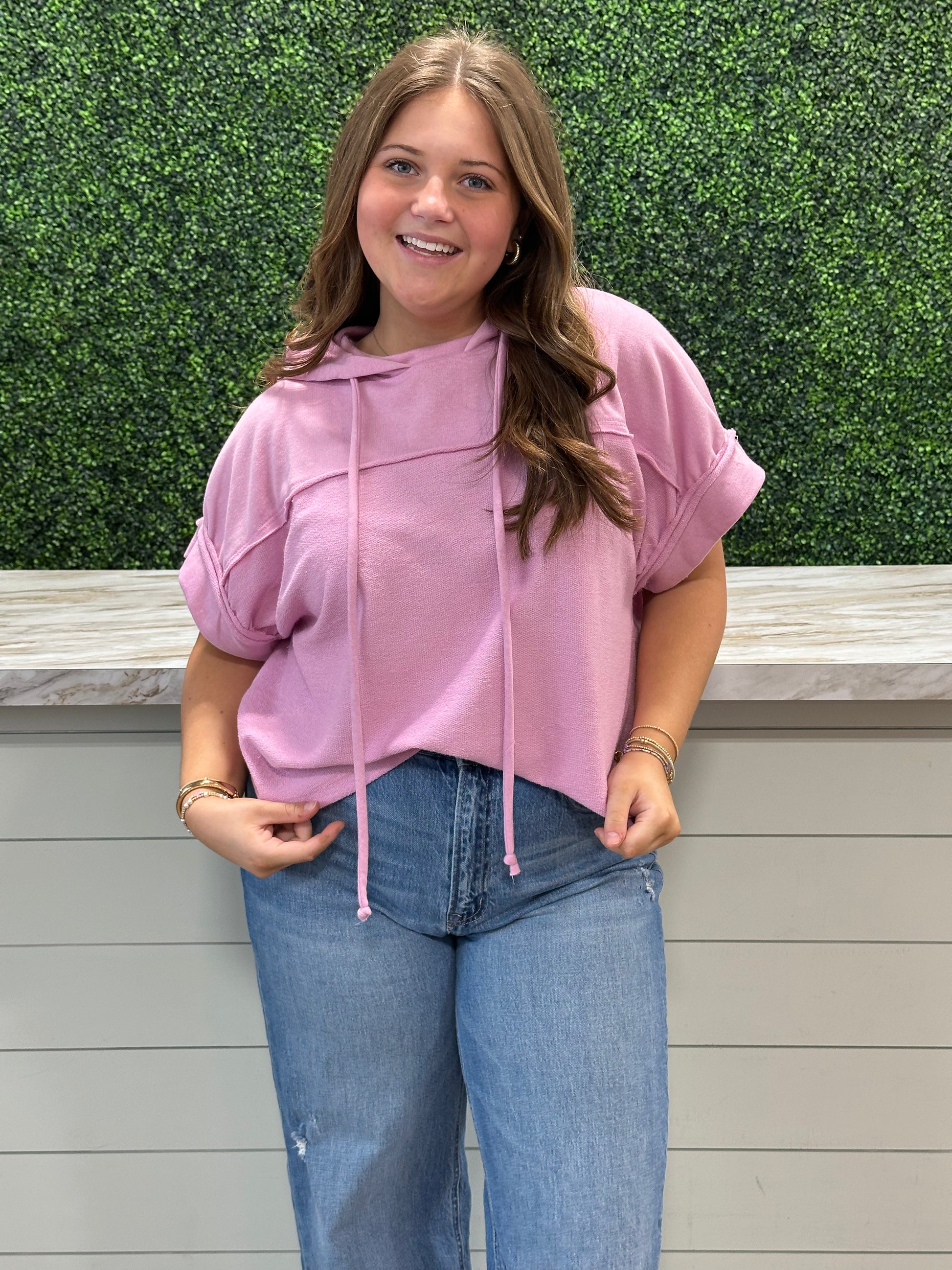 Cozy meets cute in this playful pink lavender hoodie shirt. With raw edge details adding a touch of cool, it’s perfect for layering or lounging in style. Soft, comfy, and ready to brighten your day!