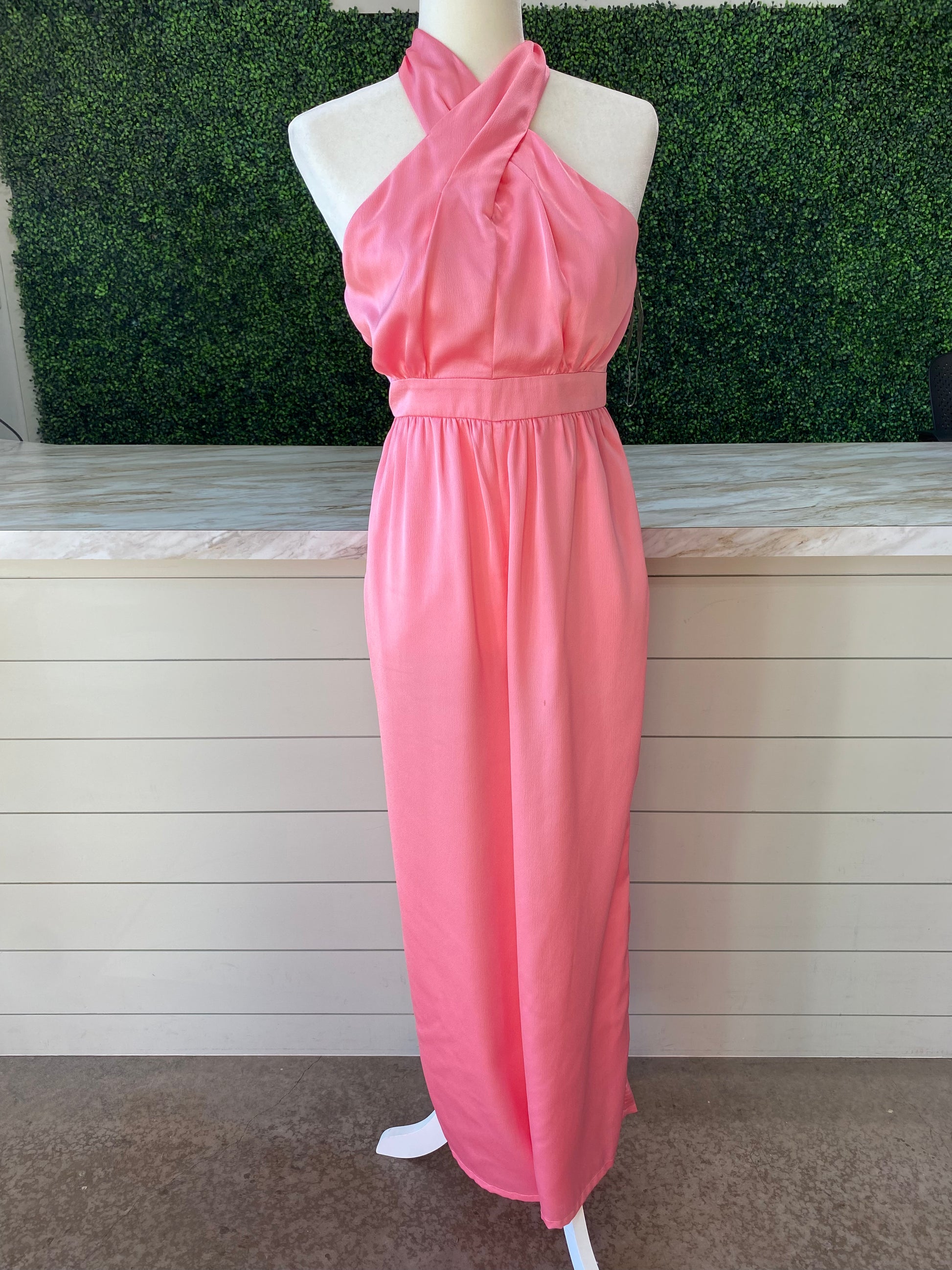Pink Silky Twist Tie Jumpsuit